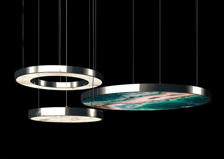 Iluminación pensada como una instalación escenográfica, no solo funcional, para completar la atmósfera de tus ambientes. Foscarini, Artemide, Luceplan, Martinelli, Slamp y otras marcas líderes del mercado